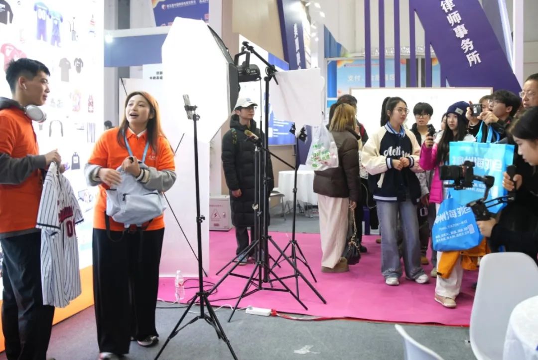外国语学院和福建阳光学院跨境直播团队学生在会展现场进行跨境直播(一) 外国语学院供图