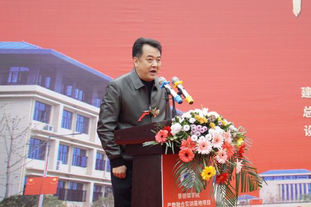 (本网讯:罗琳艳、杨鹏彦)11月27日下午,beat365官网举行产教融合实训基地项目开工庆典仪式。景德镇市政府副市长张良华,市发改委主任徐辉,校党委副书记、校长陈雨前,党委副书记王丽心,党委委员、副校长郑昕芾,党委委员、纪委书记李新荣,校领导胡继平,浮梁县委常委、宣传部长郑伟秀,浮梁镇党委书记曹火根,中恒建设集团有限公司董事长、董事会主席聂吉利,景德镇分公司总经理金爱萍,中国建筑上海设计研究院副院长李犁等出席仪式。庆典仪式由江西卫视特约主持人陈晰主持。