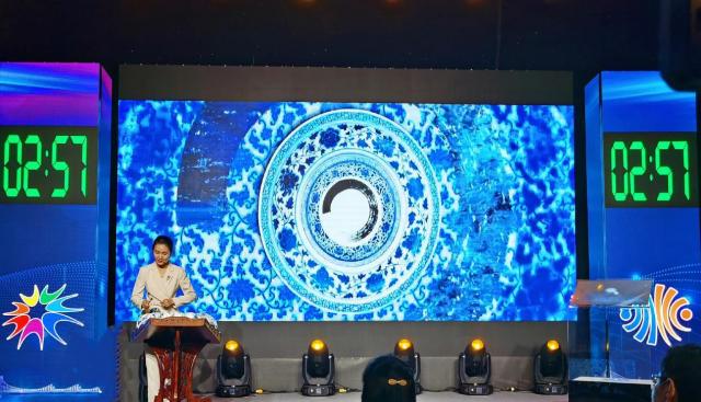 自主命题环节,周桂诗洋以《走进瓷乐的“声如磬”》为题,围绕景德镇千年的瓷乐,进行了精彩的现场展示,根据学科专长、职业素养,运用通俗易懂的语言深入浅出地将瓷乐器的声乐原理生动表述,让千年前的古代工艺与现代科技跨越历史长河相逢,以通俗易懂的语言融合道具、图像、音乐等生动诠释深奥的科学原理,使科普听得懂、看得清、记得住。随机命题讲解《新冠病毒》将深奥的科学摇身一变为知识与趣味同在的科普艺术品,生动展现了当代科普的魅力。