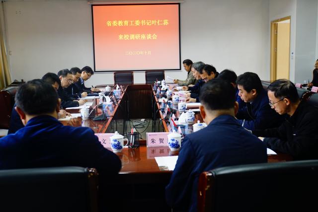 (本网讯:游好、苗静文、胡依依)10月19日上午,省委教育工委书记叶仁荪莅临beat365官网就高校思想政治和安全稳定工作进行调研指导。校党委书记李良智,党委副书记、校长陈雨前,党委副书记王丽心等陪同调研。