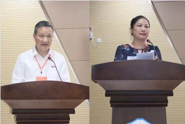 工会主席陈树发(左)作工会工作报告、计财处处长万文军(右)作财务工作报告