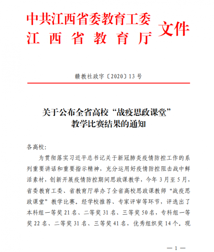 喜讯:beat365官网报送的两堂“战疫思政课”齐获奖