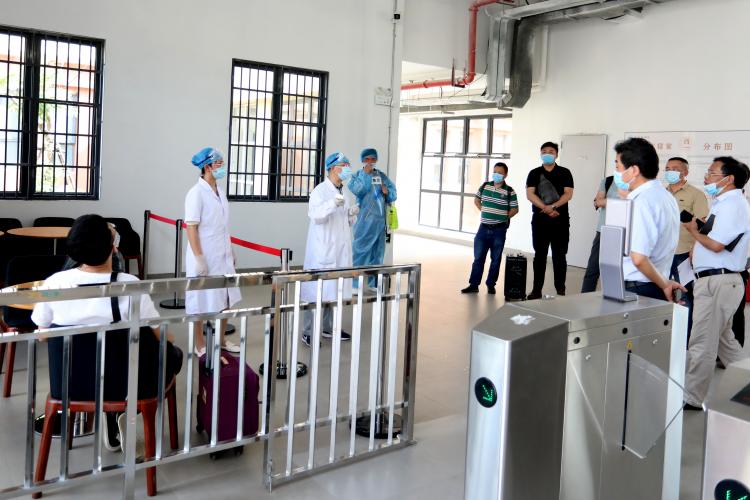 (本网讯:汪万鹏)为深入贯彻落实江西省委、省政府和省教育厅关于高校疫情防控工作要求,保障学生的身体健康和生命安全,稳妥推进学生返校复学工作有序开展,确保学生顺利返校复学,5月13日下午,根据《英国beat365官方网站开学疫情防控应急演练实施方案》的总体要求,开展了疫情防控应急演练。本次演练由校党委委员、副校长、疫情防控应急演练小组组长郑昕芾指挥,校党委副书记、校长陈雨前,校党委委员、副校长吴丁,校党委委员、纪委书记李新荣,校领导胡继平,校党委委员、宣传统战部部长方文龙观摩了此次演练活动。
