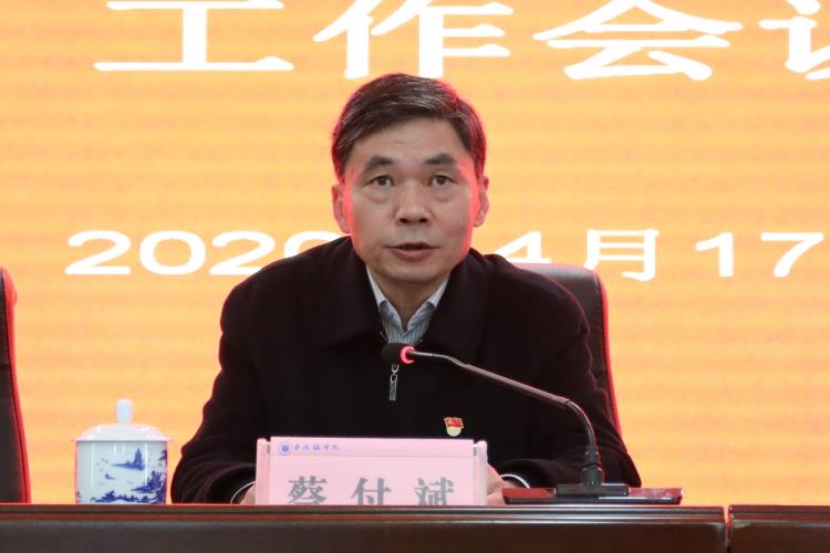 蔡付斌强调,2020年,学校全面从严治党工作要坚持以习近平新时代中国特色社会主义思想为指导,深入贯彻党的十九大和十九届二中、三中、四中全会精神,学习贯彻习近平总书记重要讲话精神和重要论述;要认真学习贯彻《党委(党组)落实全面从严治党主体责任规定》,坚持和加强党对学校工作的全面领导,坚持全面从严治党,增强“四个意识”,坚定“四个自信”,做到“两个维护”;要按照省委要求,严格按照学校党委《关于省委第十巡视组巡视反馈意见整改工作方案》,扎实开展巡视整改工作;要巩固“不忘初心、牢记使命”主题教育成果,坚持社会主义办学方向,落实立德树人根本任务,以党的政治建设为统领,扎实推进党的各方面建设,持续提升党建和思想政治工作质量;要认真对照教育部本科教学合格评估专家组反馈意见,切实开展整改落实,不断推进学校本科教学工作高质量发展;要切实增强学校各级党组织创造力、凝聚力、战斗力,巩固和发展反腐败斗争压倒性胜利;要统筹做好疫情防控和学校事业发展各项工作,坚决打赢疫情防控的人民战争、总体战、阻击战。