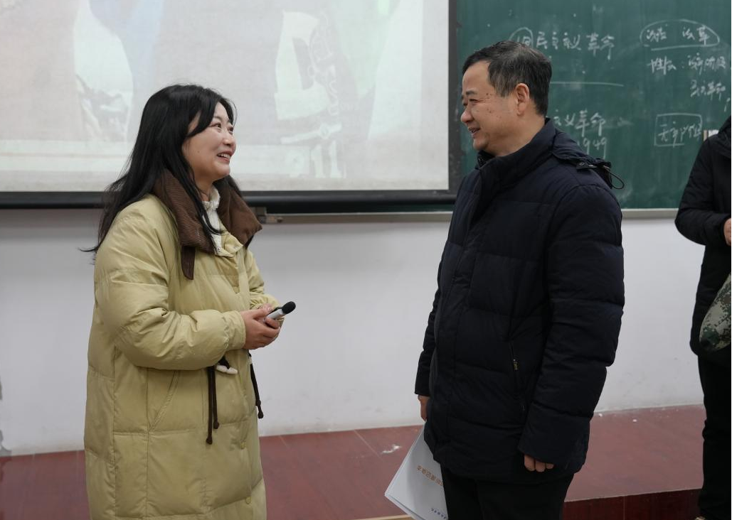 课上,校领导们全神贯注,详细记录教学内容,全方位了解教师的教学风采及学生的学习状态。他们不仅注重教师的“教”,更关心学生的“学”。教师备课充分、精神饱满、授课认真;学生兴趣浓厚、互动频繁、精神状态饱满,课堂效果显著。熊震宇听取了马克思主义学院程凌霞老师讲授的《中国近代史纲要》,课后与程凌霞亲切交流,针对如何进一步改进课堂教学方式、提升教学质量提出了意见和建议,为教师的教学工作提供了新思路。