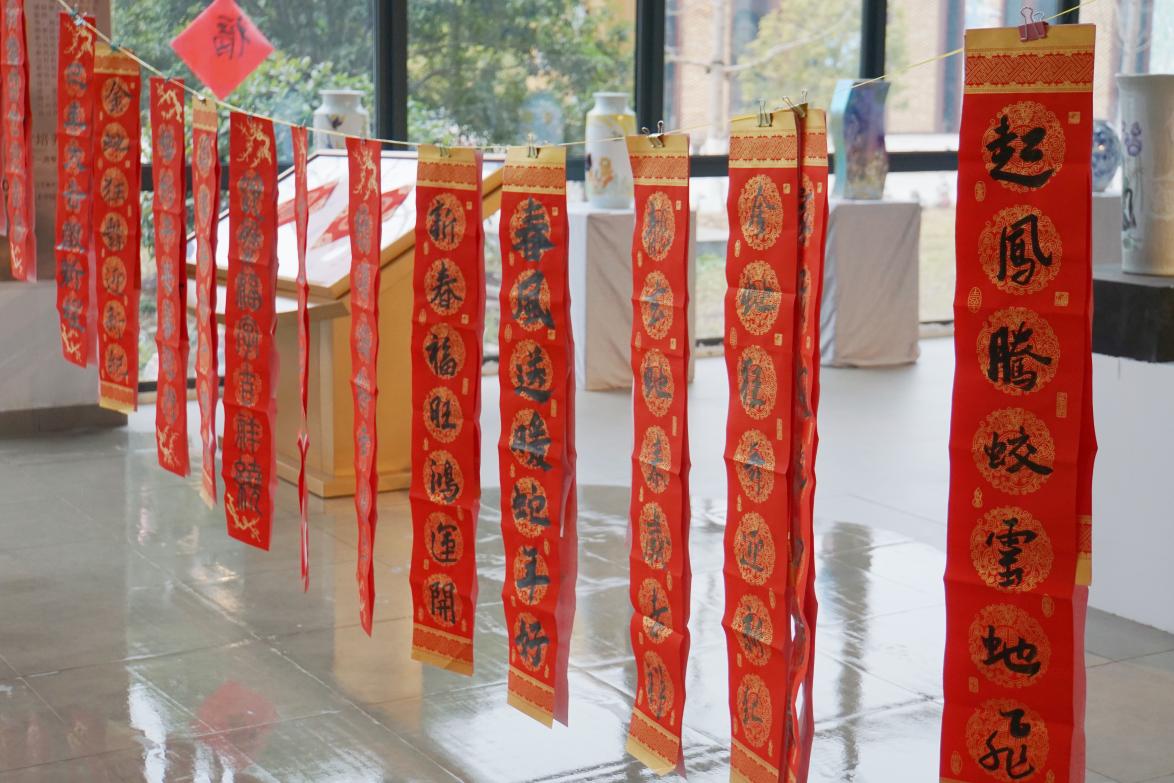 (本网讯:文|胡露婷/图|陈嘉瑶、朱燕)在岁末年初的温馨时刻,为深入传承和弘扬中华传统文化精髓,12月27日上午,校工会在陶瓷美术与设计艺术学院一楼展厅开展“寒冬送春联,墨香暖人心”迎新年送春联活动。校党委副书记王丽心参加活动。