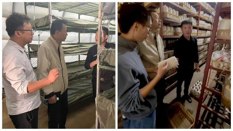 2024年10月,江西省省级科技特派员孟信刚和宋景平老师携食用菌产业团队骨干成员王凯琦博士、方倞杰博士赴山东临沂食用菌企业进行考察与引种。结合景德镇浮梁地区的气候特点,他们与企业人员进行专业、深入的交流,最终选择黑皮鸡枞菌(Xerularadicata)作为引种对象。