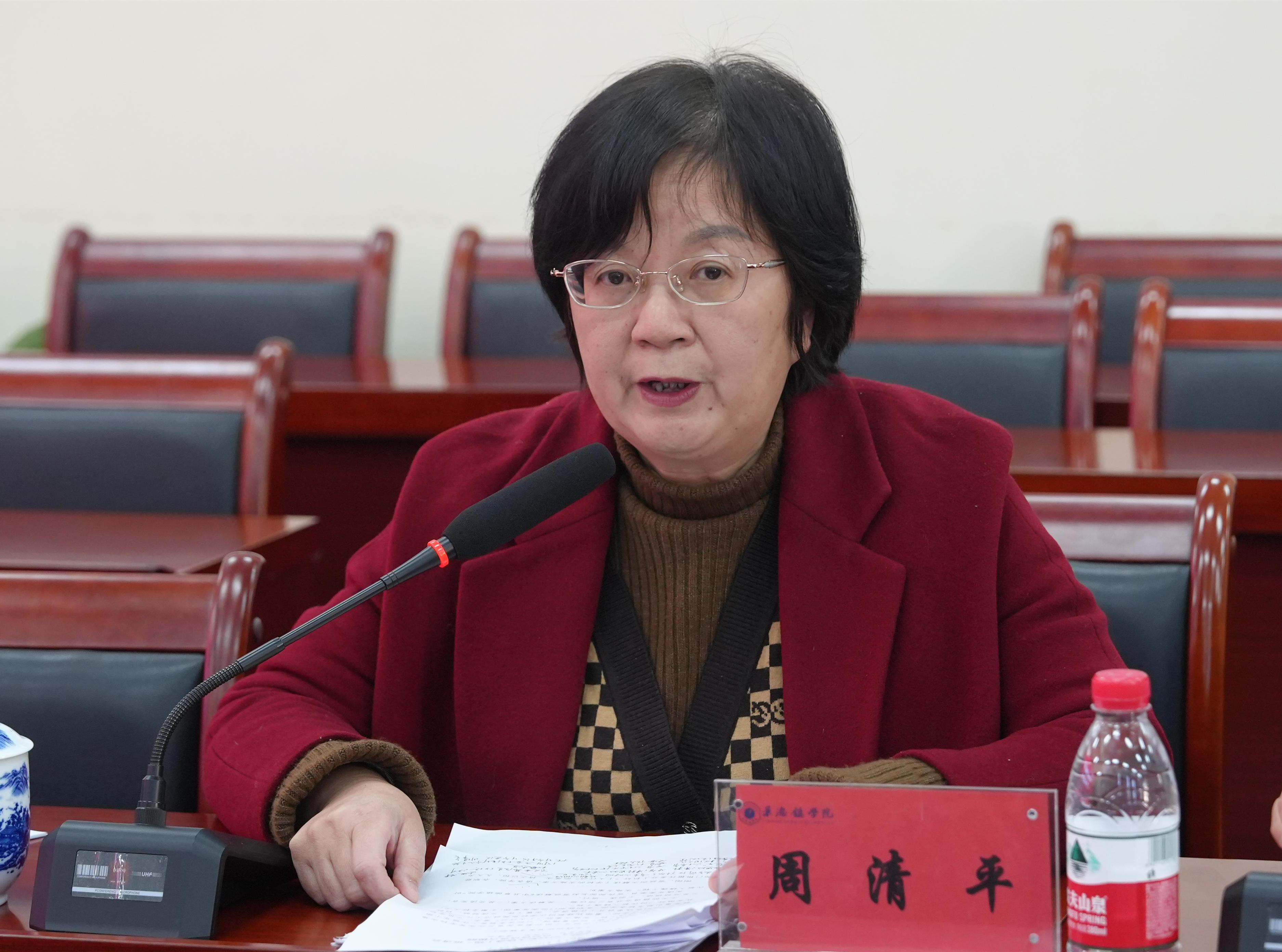 周清平总结了前一阶段的工作成果,对学校推进“时代新人铸魂工程”中的做法、经验和亮点表示了肯定。她指出,学校思政工作整体发展水平还处于“拔节孕穗期”,要深刻领悟“时代新人铸魂工程”重大意义,创新举措落实立德树人根本任务更加深入。她围绕“三个强化、三个打造”方面提出三点意见:一是要强化高质量党建引领,打造铸魂工程新品牌;二是强化“大思政课”与课程思政改革,打造思政教育新格局;三是强化“一站式”学生社区建设,打造学校育人新阵地。除此以外,她还特别强调了校园安全稳定工作,要时刻绷紧安全稳定这根弦,形成合力,共同推动学校思想政治工作再上新台阶。
