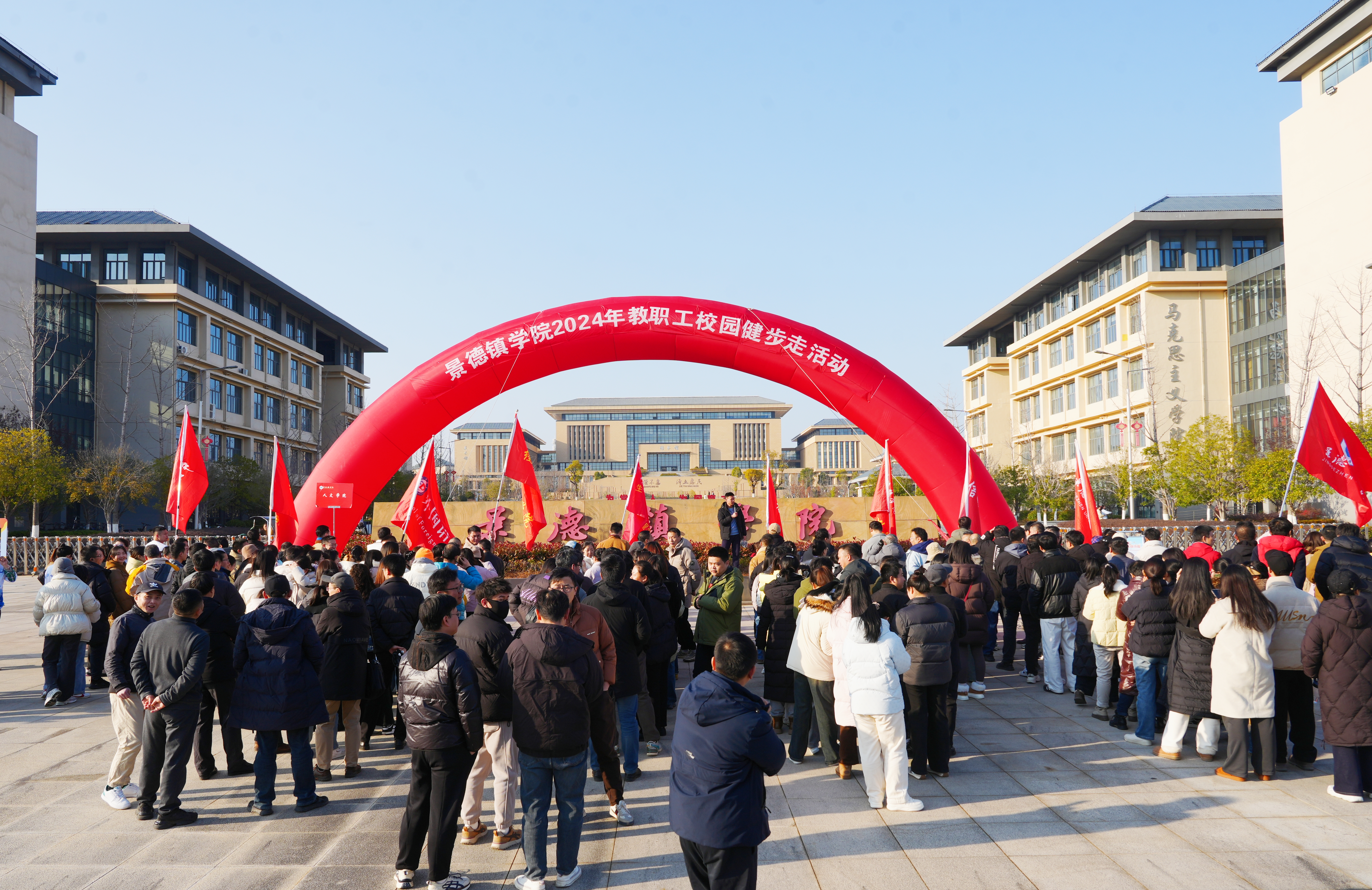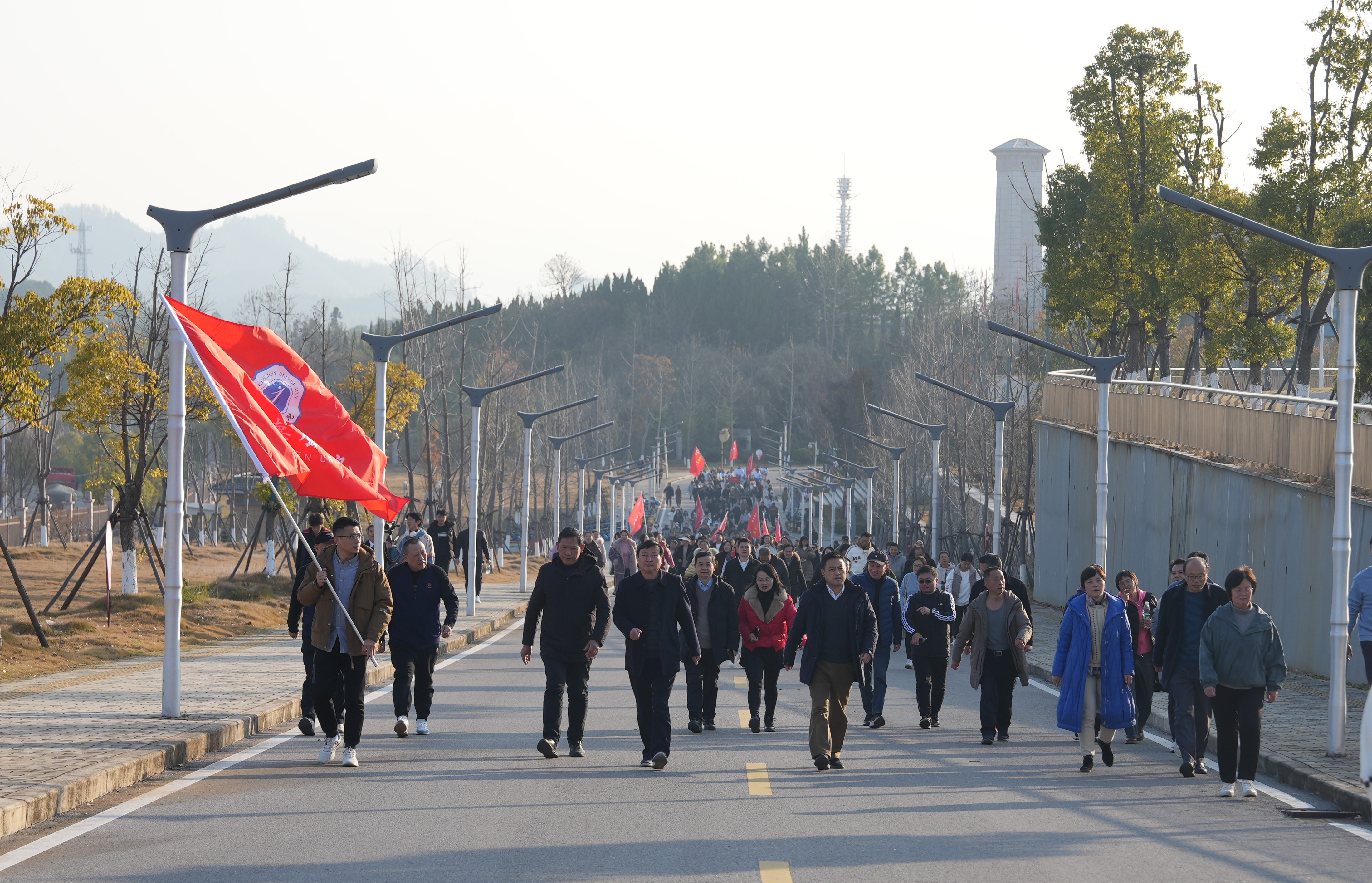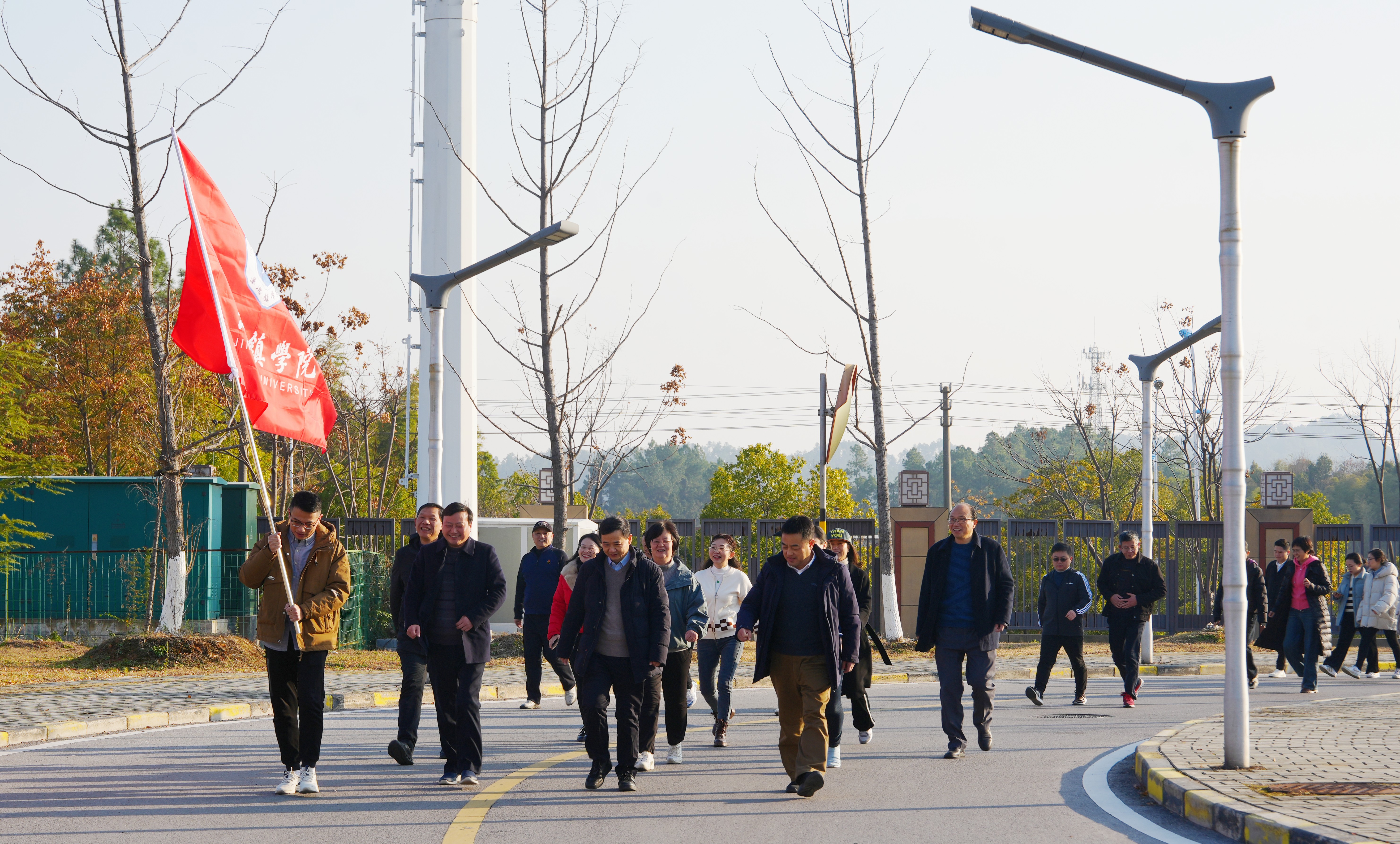 在引导车的引领下,各队伍按照既定路线有序出发,教职工们或结伴而行,欢声笑语不断;或健步如飞,尽显蓬勃朝气。大家精神饱满,享受着健步走的乐趣。沿途的校园风景与大家的欢声笑语相映成趣,为冬日的校园平添了几分暖意。