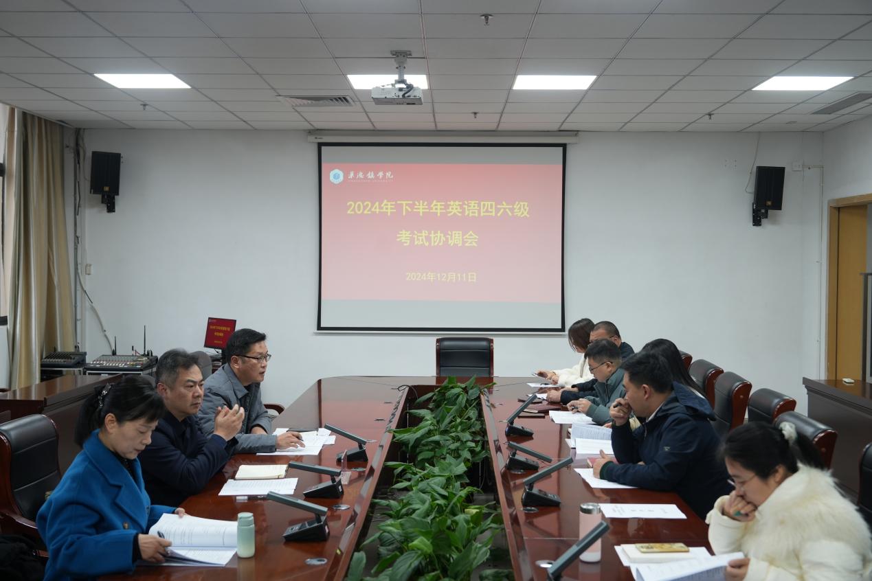 (本网讯:文|胡露婷/图|胥晴)为确保2024年下半年全国大学英语四六级考试工作顺利进行,12月11日,beat365官网在行政楼318会议室召开了2024年下半年全国大学英语四六级考试工作协调会。党委委员、副校长方漫出席会议,教务处副处长(主持工作)司春灿主持会议。