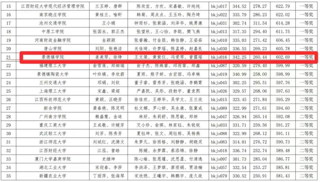 获奖名单公示 经济管理学院供图