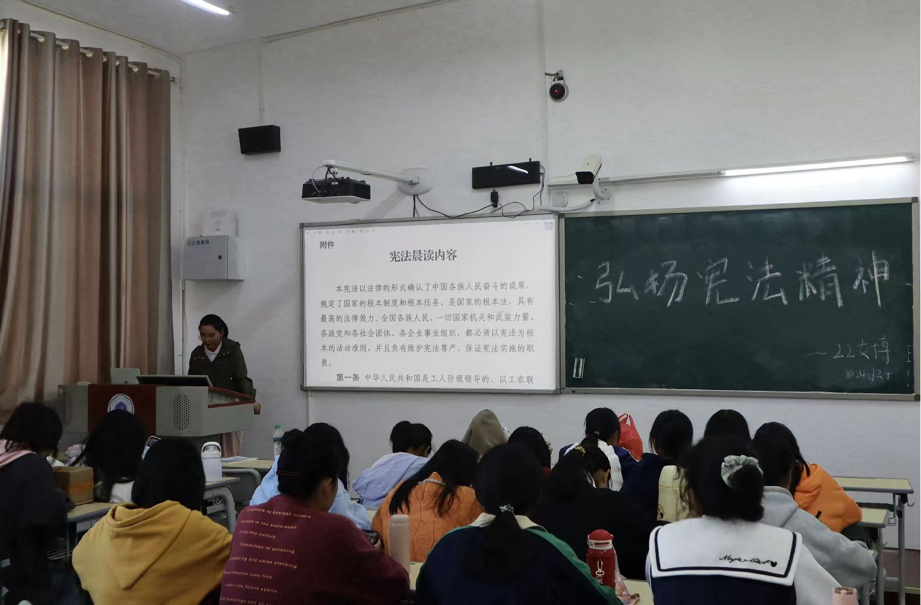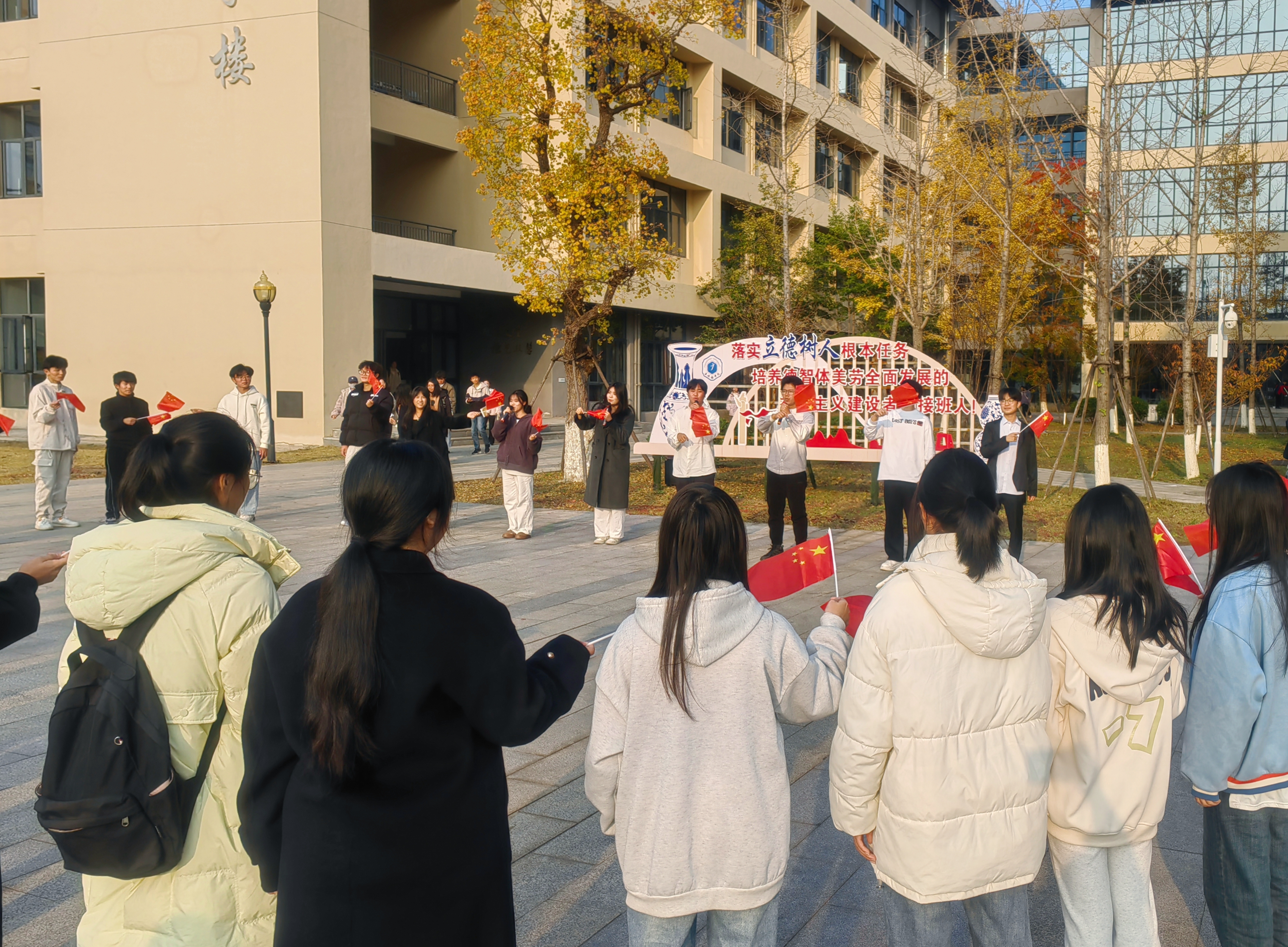 12月5日,同学们在教学楼开展宪法主题歌曲传唱活动,用青年学生喜闻乐见的方式,传唱普法歌曲、讲好宪法故事。