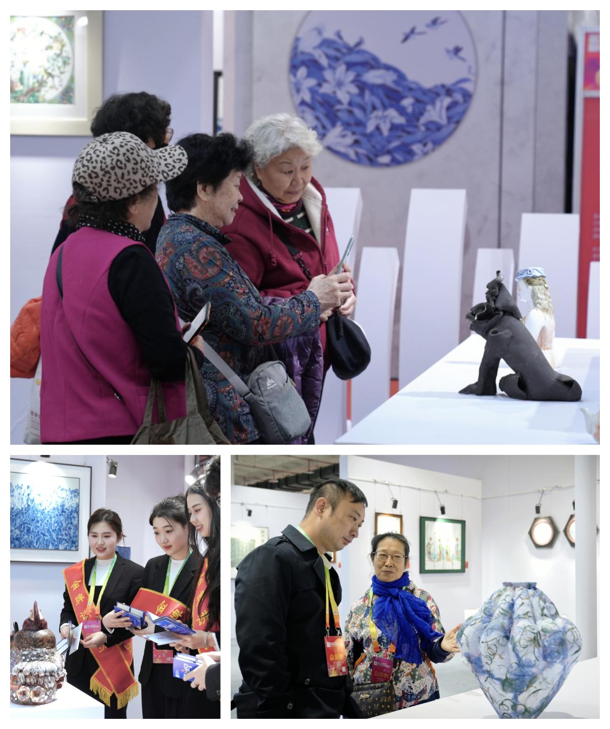 展会期间,多位领导嘉宾来到现场观展,对beat365官网教师团队的陶瓷艺术作品给予了高度评价,同时也对学校在陶瓷艺术领域的教育成果表示肯定,对学校未来的发展寄予厚望。同时,大量观众被这些精美的陶瓷作品所吸引,纷纷驻足欣赏,拍照留念。