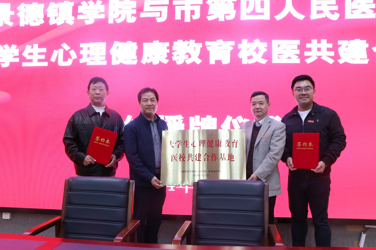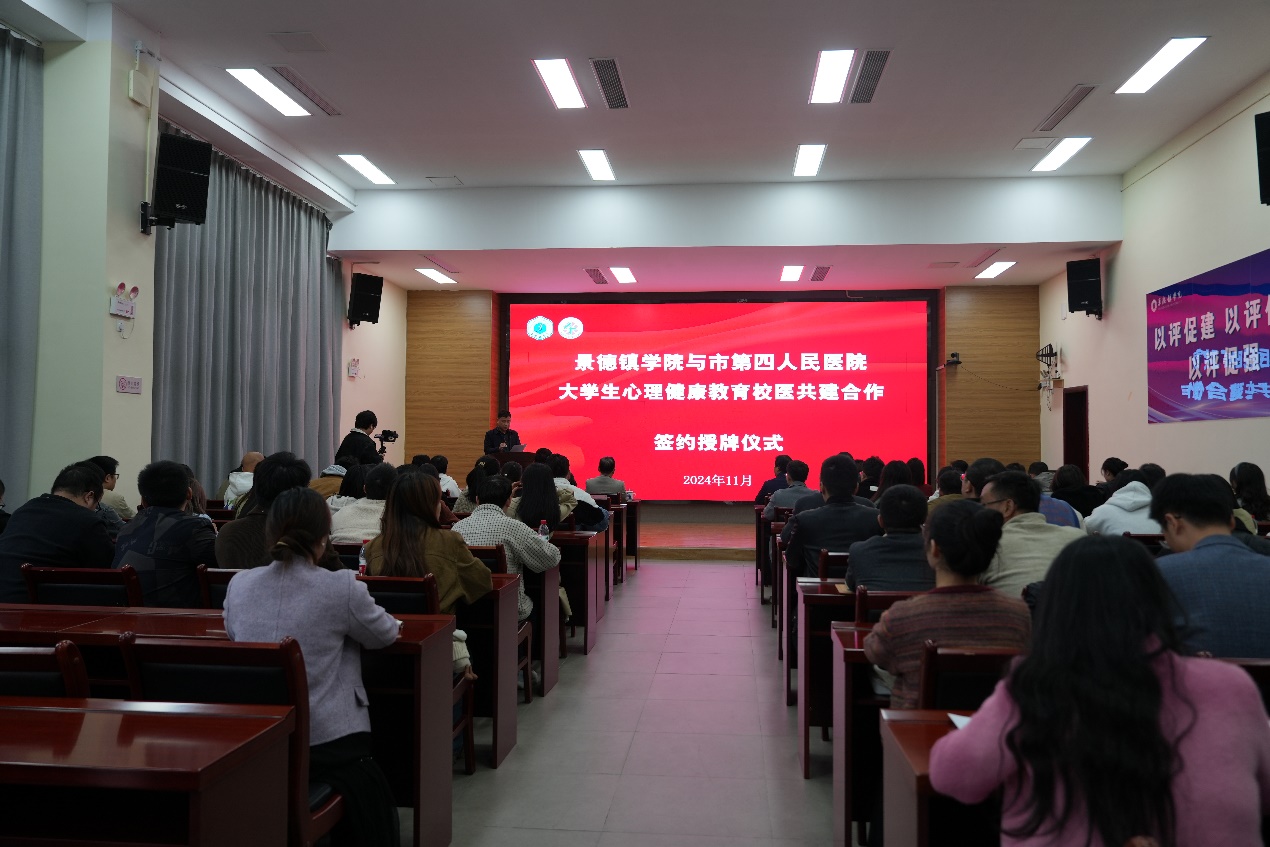 (本网讯:文|朱小薇/图|童炜轶、毛玉婷、黄鑫)为提升学生的心理健康水平、加强心理危机干预能力、推动心理健康教育普及以及构建全方位心理健康支持体系,提供更优质的专业医疗服务,11月20日下午,英国beat365官方网站与景德镇市第四人民医院校医心理健康教育合作共建的签约授牌仪式在第一报告厅举行。党委副书记、校长熊震宇,景德镇市第四人民医院院长施振岗出席会议,双方签署了合作协议,校心理教育中心主任郑勇军主持仪式。