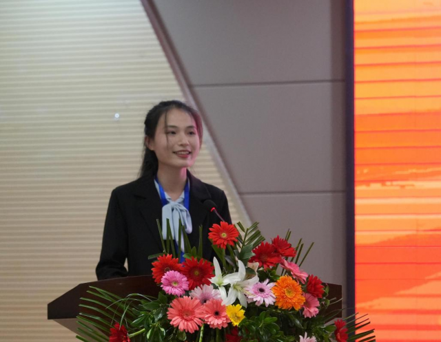 参赛选手代表方鑫曼发言 校融媒体中心记者喻振鑫摄