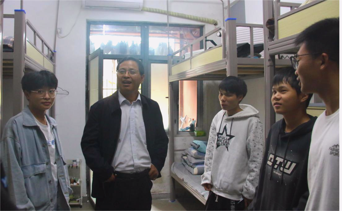 饭后,叶观荣来到学生宿舍,细致入微地查看了学生的居住环境,与学生面对面亲切交谈,和同学们话家常,关切地询问同学们学习和生活情况以及在日常生活中的困难和需求,鼓励大家积极反映问题。他表示,学校将不断优化住宿条件,为学生创造更加舒适、安全的学习生活环境。