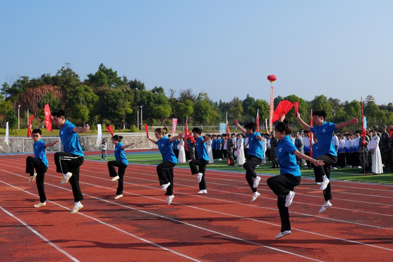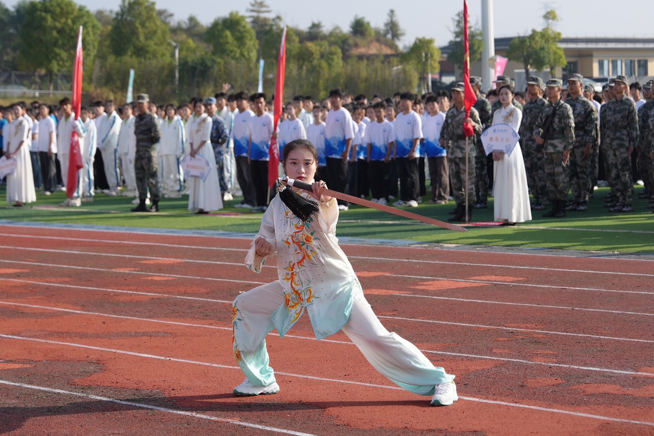 除了庄重而热烈的入场仪式外,开幕式上还精心安排了精彩纷呈的暖场表演,为整个运动会增添了浓厚的文化氛围和蓬勃的青春活力。其中,武术表演以其刚柔并济、动静结合的特点,展示了学生们的身体素质与技艺水平,更传递了坚韧不拔、自强不息的武术精神,赢得了阵阵掌声。