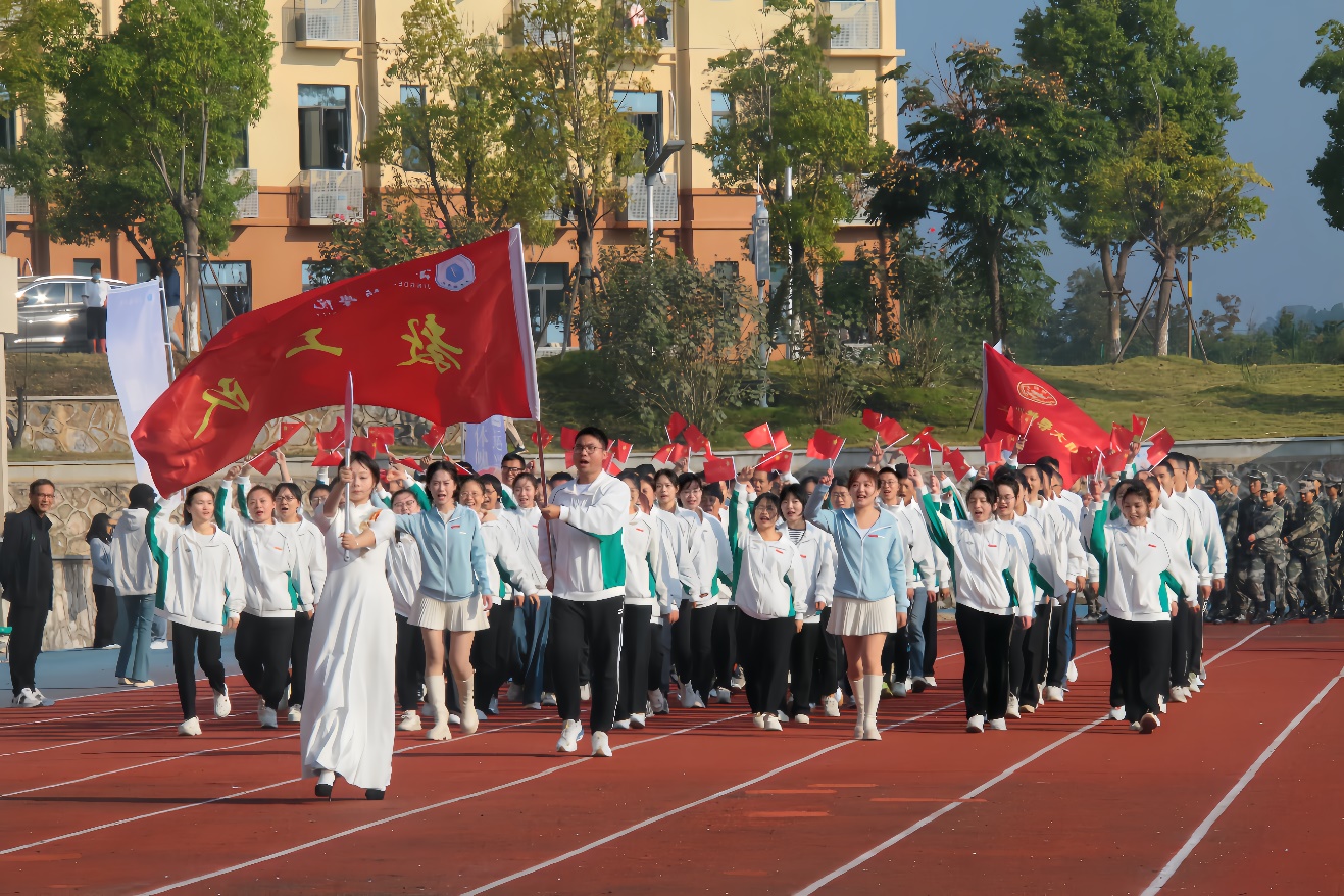 开幕式上,熊震宇校长的致辞深刻而富有感染力,他表示运动会是体育的盛会、是青年的盛会、是友谊的盛会。他鼓励全体师生以更加饱满的热情投入到运动会的各项比赛中去,不仅要赛出风格、赛出水平,更要赛出友谊、赛出团结。他强调,运动会不仅是对个人体能与技能的考验,更是对团队精神与集体荣誉感的锤炼,希望大家能够借助这次机会相互学习、共同进步,为构建和谐、向上的校园文化氛围贡献力量。