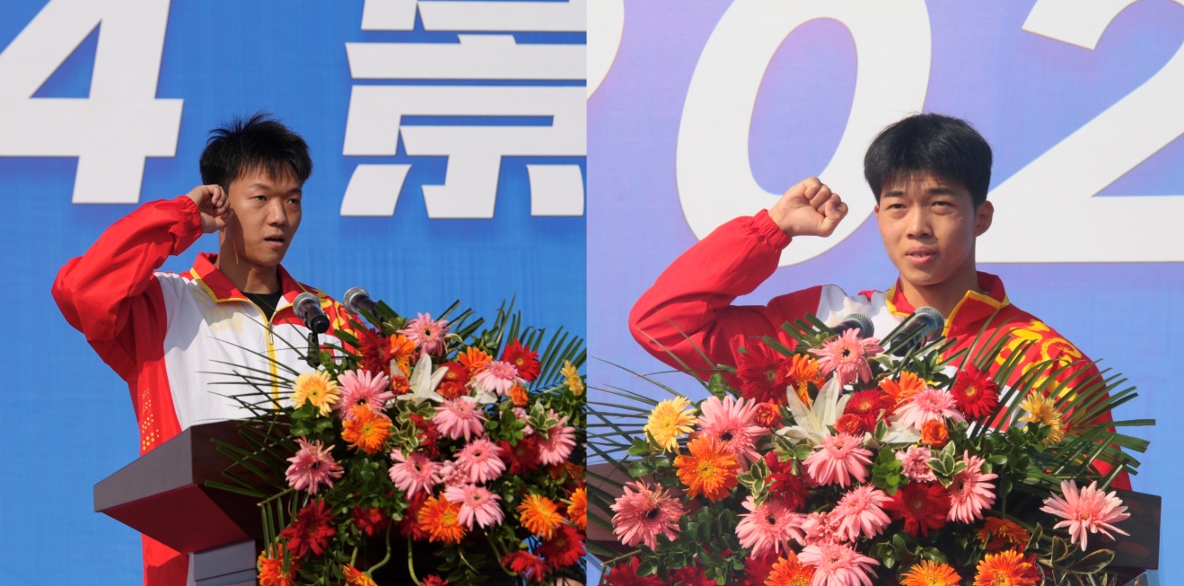 运动员代表冷芝霖(右)、裁判员代表王思艺(左)宣誓 校融媒体中心记者卢军怡摄