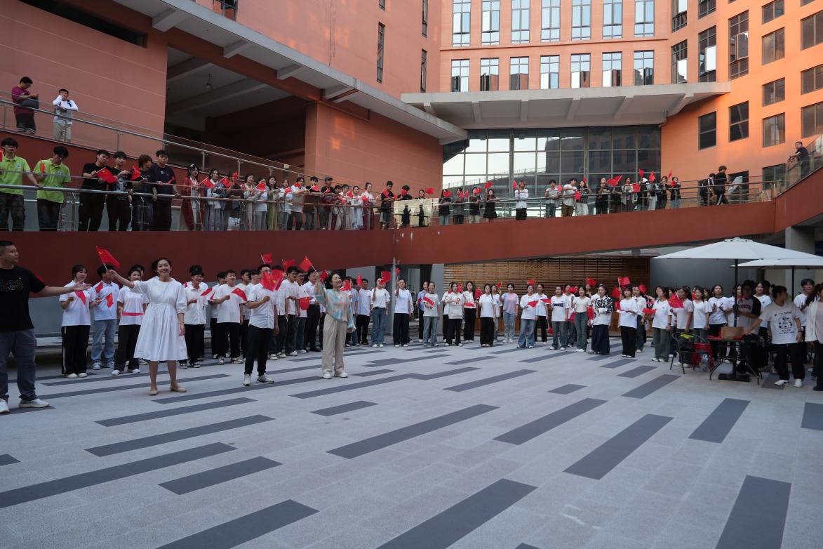 随着悠扬而激昂的旋律响起,师生们用歌声向祖国深情献礼。现场氛围热烈而庄重,歌声饱含深情,每一个音符都跳跃着青春的活力与激情,展现了新时代青年对党的忠诚、对国家的热爱,以及对未来的无限憧憬。
