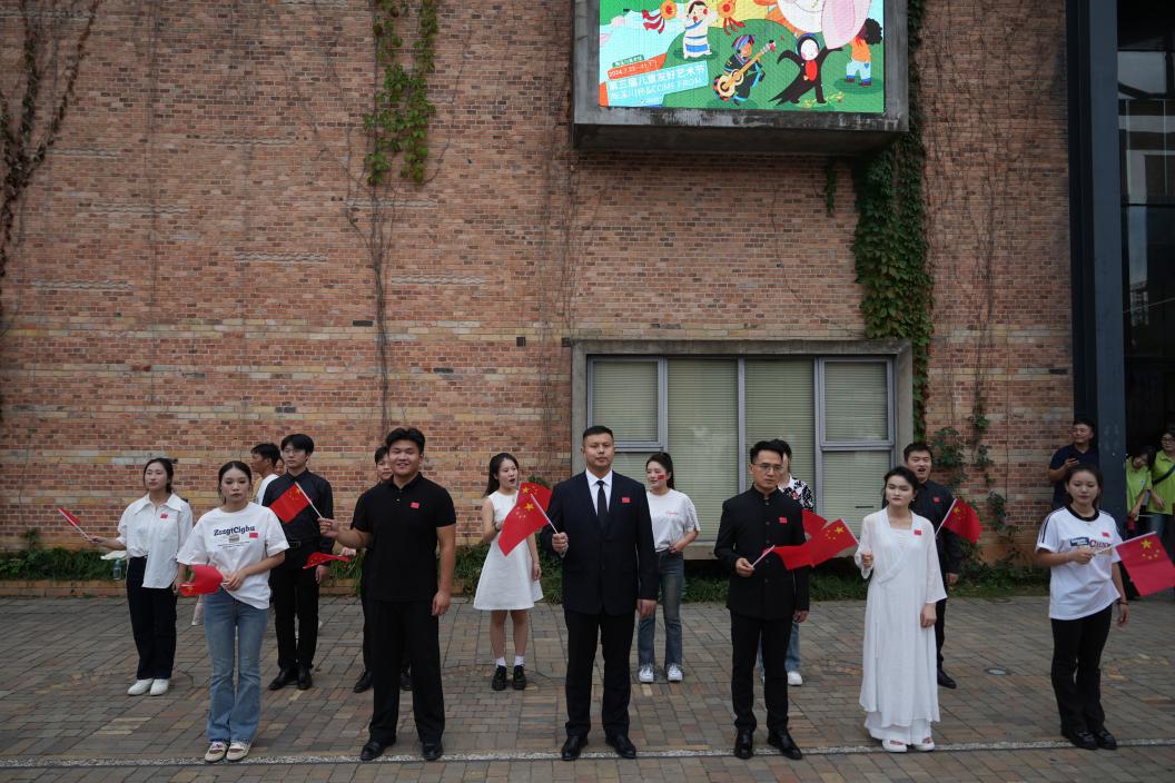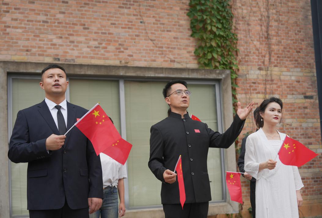 活动现场,志愿者穿梭于人群之中,将一面面鲜艳的五星红旗递给每一位观众,它们如同流动的红色火焰,瞬间点燃了现场的热情。大家满怀激情地接过红旗,高高举起,仿佛托起了对祖国的无限敬仰与热爱。众人齐声高唱,歌声汇聚成一股磅礴的力量,穿越云霄,向祖国深情告白,许下为实现中华民族伟大复兴中国梦而不懈奋斗的铮铮誓言。