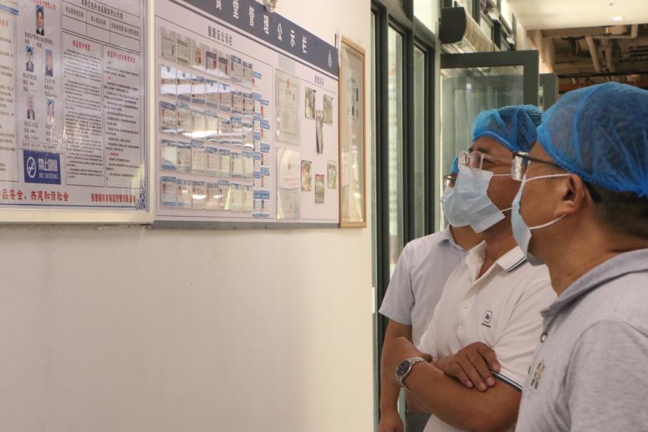 叶观荣深入beat365官网第一和第二食堂进行检查,进入食堂后厨查看了食堂接待容量并询问了饭菜价格,随后对库房食品存放、餐具消洗、消防设施、环境卫生等方面进行了细致检查。