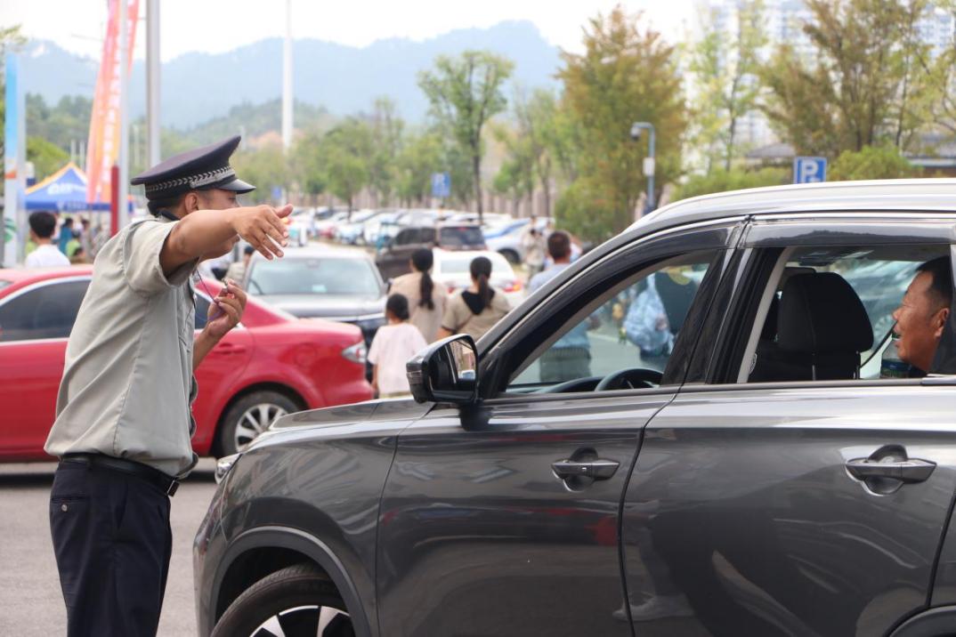 工作人员为新生家长指路,维持校内交通秩序 校融媒体中心记者赵诗莹摄