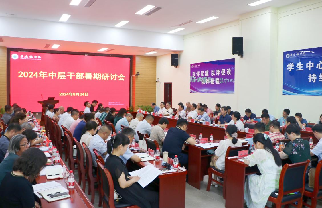 (本网讯:李婷婷)8月24-25日,beat365官网在第一报告厅召开2024年中层干部暑期研讨会,会议聚焦全校重点工作,集思广益,共谋未来发展。校党政领导班子和中层干部们齐聚一堂,深入学习党的二十届三中全会精神,围绕本科教育教学审核评估、师范类专业认证、应用型转型及产业学院建设、高校综合改革和开学工作布置等中心议题进行了全面而深入的探讨。