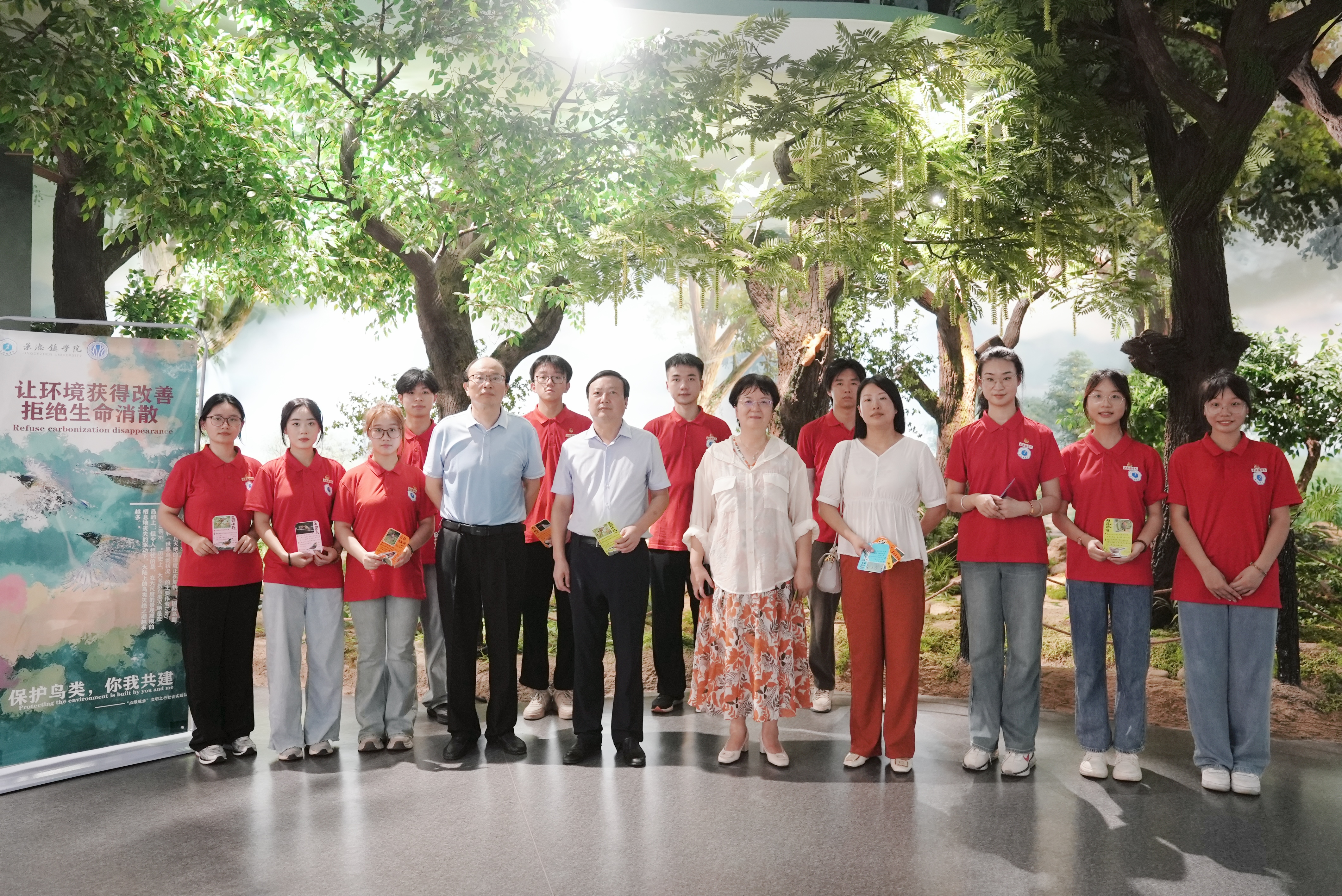 “点绿成金”文明之行社会实践团队在蓝冠噪鹛科普馆内合影 校团委供图