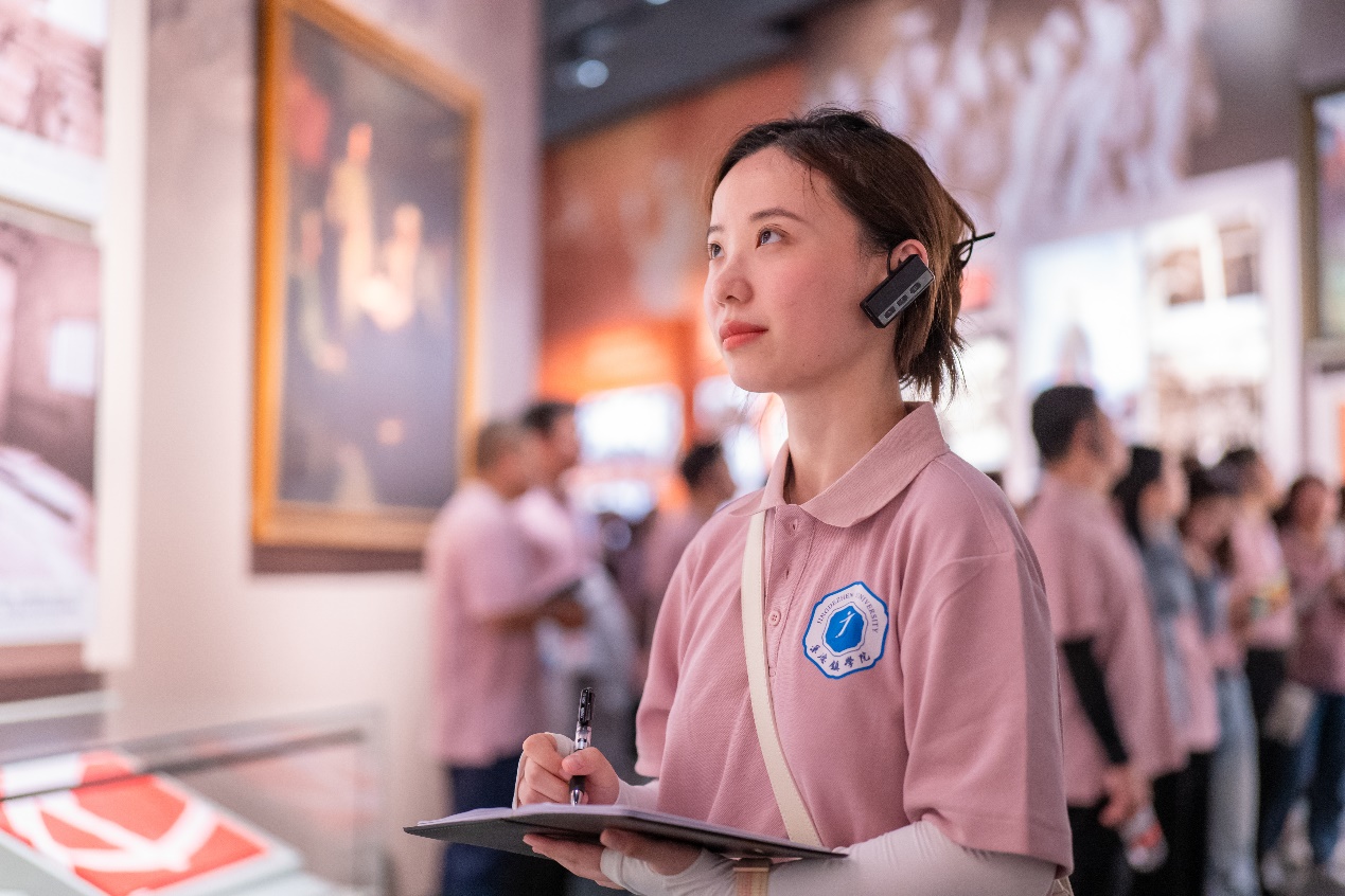 欲知大道,必先为史。沿着毛泽东广场拾阶而上,来到毛泽东同志纪念馆。讲解员老师选取了“那件有73个补丁的睡衣”“倾斜的半张床”“毛家烈士”等一批具有代表性、影响力的文物为教材,为大家连续讲授了5堂思政微课。在深情道来的那些岁月往事中,一代伟人艰苦奋斗、心系人民、勇于开拓的光辉形象真实再现在大家眼前。在毛泽东同志纪念馆里的一个多小时,学员们走走停停,时而沉思,时而记着笔记,全身心投入到大思政教育中,白纸黑字中伟人的一生,在这一刻具象化、鲜活化、温度化。