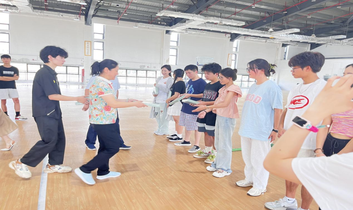 布依族同学为大家详细介绍了布依族的民族习俗和民族文化,并对“六月六”等地方民族文化进行了细致解说。布依族是一个以农耕为主的民族,竹竿在日常生活中有着重要作用。每逢重大节日与迎接贵客时,大家都会欢聚一堂,载歌载舞,将竹竿舞作为表达喜悦和庆祝的方式。竹竿舞已经成为布依族生产生活中不可缺少的一种民族文化。在一片欢声笑语中,师生共同舞动竹竿,伴随着布依族音乐,跟随着节奏跳起了竹竿舞,整个活动过程充满了民族团结色彩和浓厚的文化氛围。