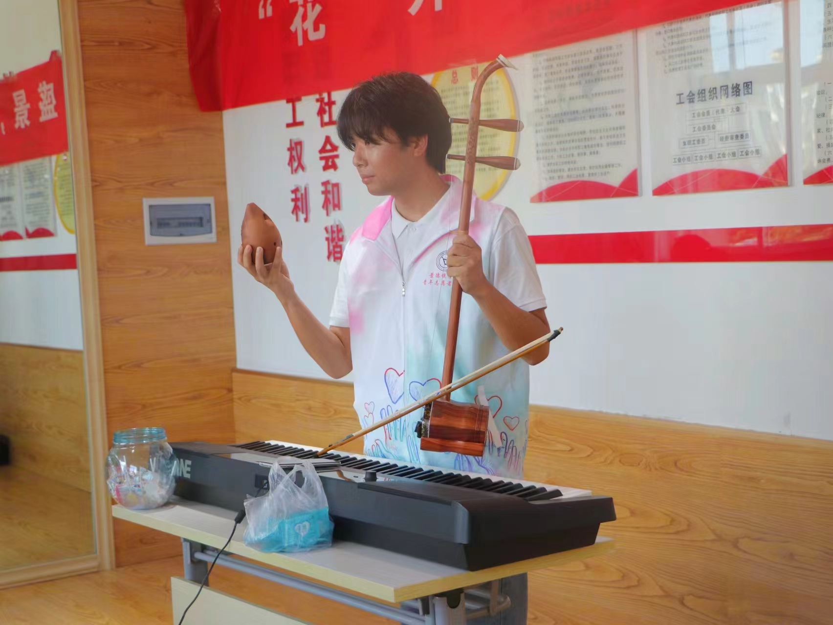 学以致用,用以筑梦。“‘花’开盛景·情暖乡溪”志愿服务队将乐器带入课堂,开展了一堂别有韵味的音乐课。服务队成员黎逸雄以自身扎实的专业素养向孩子们普及音乐知识,领略不同乐器带来的不同音色和旋律。