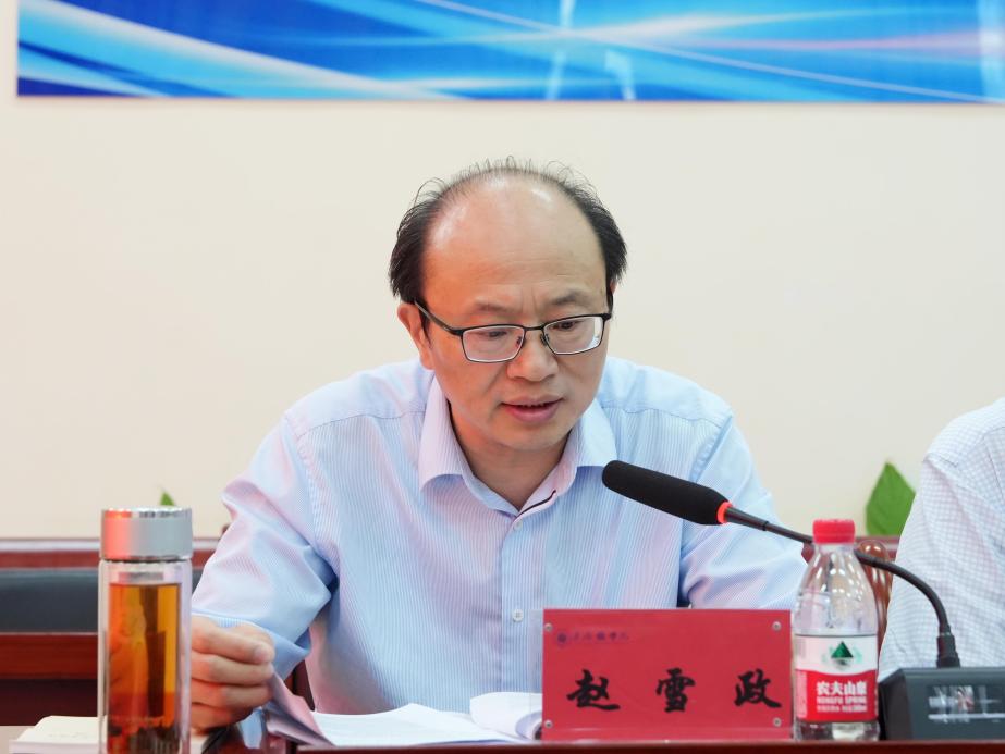 会上,赵雪政对专题学习内容进行领学。人文学院院长陈猛和计划财务处处长胡勇军作交流发言。