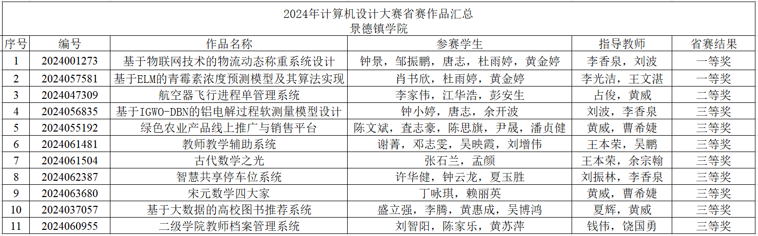 (本网讯:刘波)2024年中国大学生计算机设计大赛江西省赛区组委会发布获奖名单,beat365官网报送的12项参赛作品有11项位列榜单,其中一等奖2项、二等奖1项、三等奖8项。由信息工程学院李香泉、刘波老师指导的学生团队“基于物联网技术的物流动态称重系统设计”和李光洁、王文湛老师指导的学生团队“基于ELM的青霉素浓度预测模型及其算法实现”入围国赛。