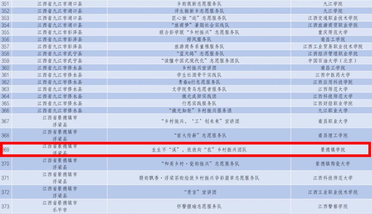 2024年全国大学生“乡村振兴”志愿服务团入选团队名单