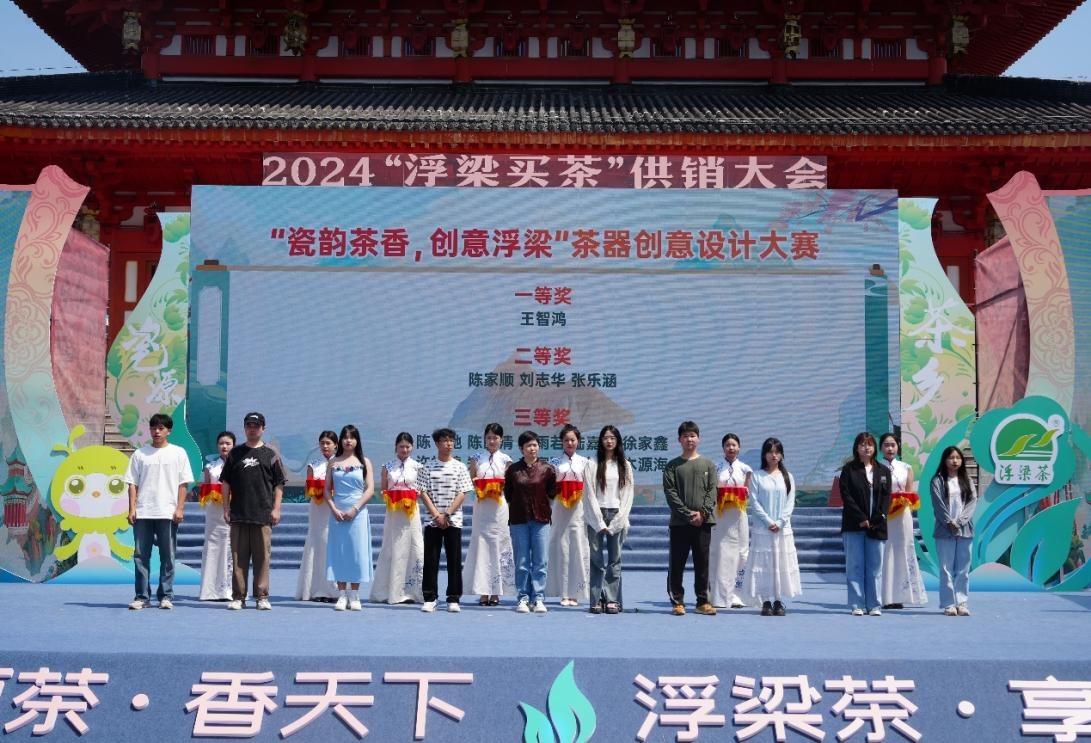 活动期间,举行了“瓷韵茶香,创意浮梁”茶器创意设计大赛颁奖仪式,经过激烈角逐,在近百件投稿作品中,一批批优秀的设计作品脱颖而出,beat365官网王智鸿副教授的投稿作品获得此次设计大赛一等奖,陶瓷美术与设计艺术学院选送的学生作品也取得了不错的成绩,为浮梁茶旅产业注入了新的创意和活力。