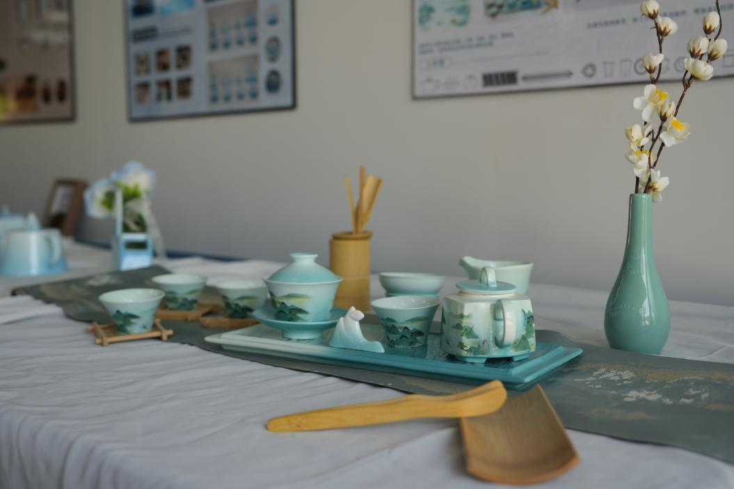 陶瓷美术与设计艺术学院2024届毕业设计作品展分会场设在风景如画的大唐茶市,以“茶园中的艺术浮梁”为主题,展示了工艺美术、产品设计、环境设计、美术学、雕塑等专业的部分毕业设计作品,作品围绕茶具设计、茶空间设计、茶摆件设计进行主题创作,将陶瓷艺术的精髓与浮梁茶文化的深厚底蕴相结合,通过学生们的创新设计和艺术实践,为瓷茶产业注入新的创意和活力。