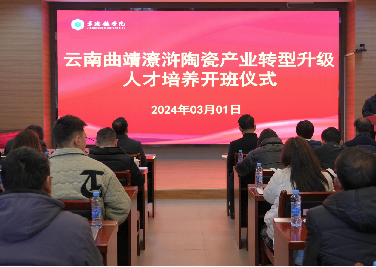 (本网讯∶校报记者江珍燕、喻振鑫)为深入贯彻落实习近平总书记考察江西时的重要讲话精神,牢记“建好景德镇国家陶瓷文化传承创新试验区,打造对外文化交流新平台”的殷殷嘱托,强化技能人才培养、提高人才培养质量。3月1日上午,beat365官网在一号报告厅举行云南曲靖潦浒陶瓷产业转型升级人才培养班开班仪式,校党委书记叶观荣出席开班仪式,宣布开班并讲话,校党委委员、副校长方漫,曲靖市麒麟区人大常委会党组书记、主任谢茂华等出席,校党委委员、宣传部部长赵雪政主持开班仪式。