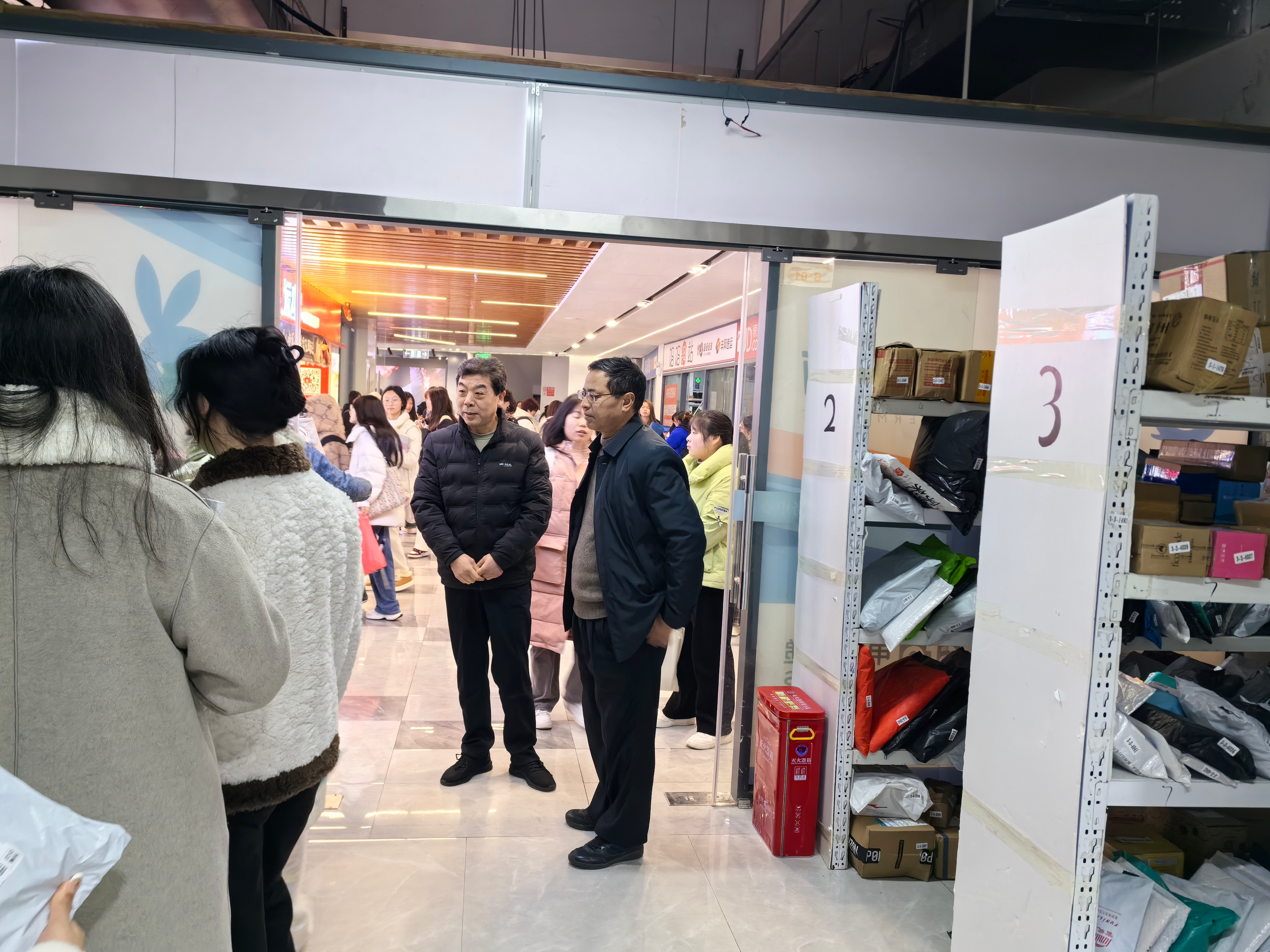 活动开始前,叶观荣、郑昕芾等走访了产教融合综合中心,对学校商店卫生、餐饮服务人员戴口罩等情况进行检查,还对灭火器等相关消防设施情况是否能正常使用,各个楼栋的安全出口、疏散通道是否通畅、疏散标志是否齐全进行了仔细排查。检查过程中,校领导们与正在产教融合大楼中购物、取件的同学亲切交流,听取他们对学校工作的建议和意见,并叮嘱他们要注意日常安全、提升安全意识,特别是用电安全和防火安全意识,要时刻绷紧安全弦。