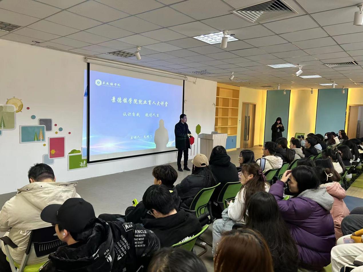 (本网讯:郑涛、于斌)近日,就业育人大讲堂——“认识自我,规划人生”主题讲座在创新创业学院二楼录播厅举办。机械电子工程学院党委书记毛鹏飞为景院学子答疑解惑、分享心得,来自11个二级学院各年级学生代表九十余人参加讲座。