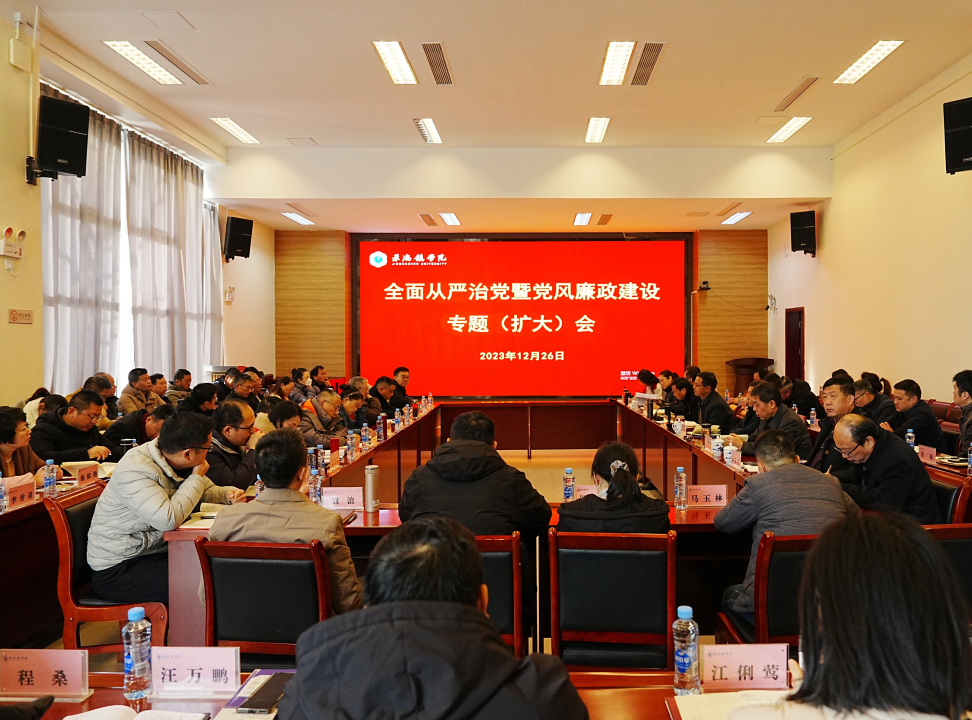 会上传达学习了中央纪委有关文件精神、全省宣传思想文化工作会议精神和全省经济工作会议精神,并播放观看警示教育片。校纪委机关负责人高俊汇报了2023年学校全面从严治党暨党风廉政建设工作情况及2024年工作思路。