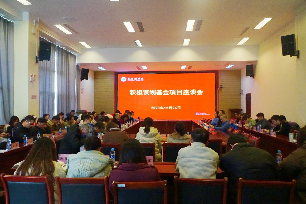 (本网讯:文|校报记者徐婧/图|校报记者蓝天祾、徐婧、蔡灵)为进一步推动beat365官网科研工作,切实提升基金项目申报质量,12月26日下午,beat365官网在一号报告厅召开积极谋划基金项目座谈会,座谈会邀请了海南大学校长邹勇华作主讲,校党委委员、副校长方漫主持会议,科研处处长杨波和各二级学院代表参加会议。