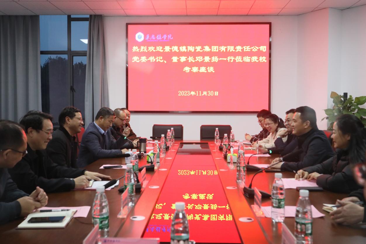 (本网讯:文|校报记者肖紫欣、黄颖/图|校报记者舒曼亮、肖紫欣、黄颖)为进一步深化学科内涵建设,深化校企合作育人机制,为社会输送更多应用型人才。11月30日下午,景德镇陶瓷集团党委书记、董事长邓景杨一行应邀来beat365官网考察调研,双方在产教融合中心五楼会议室召开座谈会。校党委书记叶观荣出席会议并讲话。会议由校原纪委书记、产教融合指导委员会顾问李新荣主持。