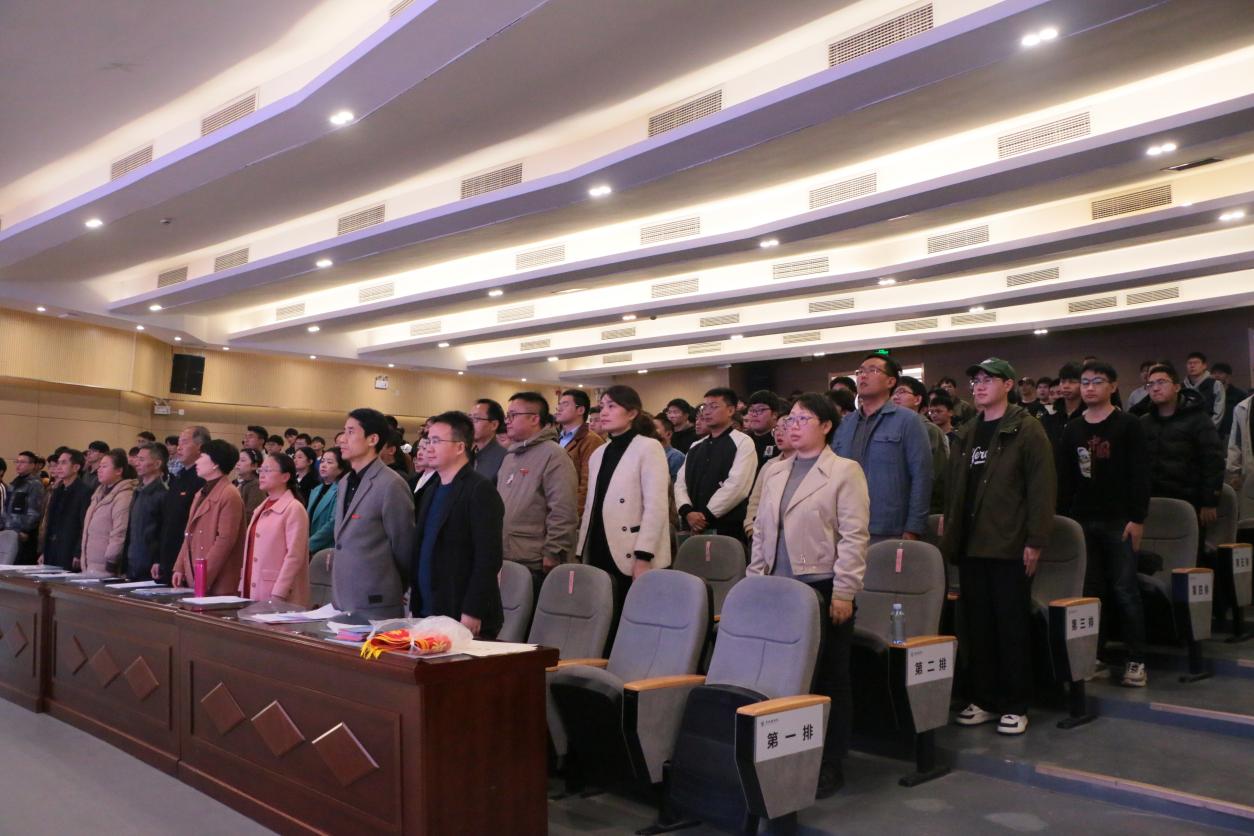 全体参会人员起立奏唱国歌 校报记者万赞摄