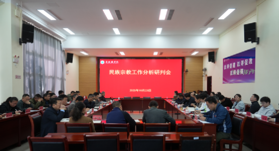 (本网讯:文|石峰/图|陈嘉瑶)为深入贯彻落实党和国家关于民族宗教工作的方针政策和决策部署,全面分析研判当前beat365官网民族宗教工作面临的新形势、新情况、新问题,进一步统一思想、明确任务、落实责任,切实提升学校民族宗教工作的针对性与实效性,筑牢校园安全稳定防线。10月23日上午,beat365官网在第一报告厅召开民族宗教工作分析研判会。校党委副书记王丽心,校党委委员、统战部部长万文军出席并讲话,校党委委员、宣传部部长赵雪政出席会议,党委统战部副部长程桑主持会议。