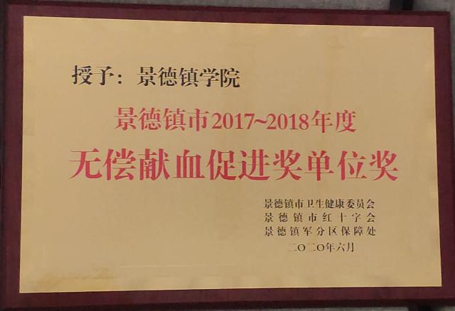 beat365官网被授予“景德镇市2017-2018年度无偿献血促进奖单位奖”