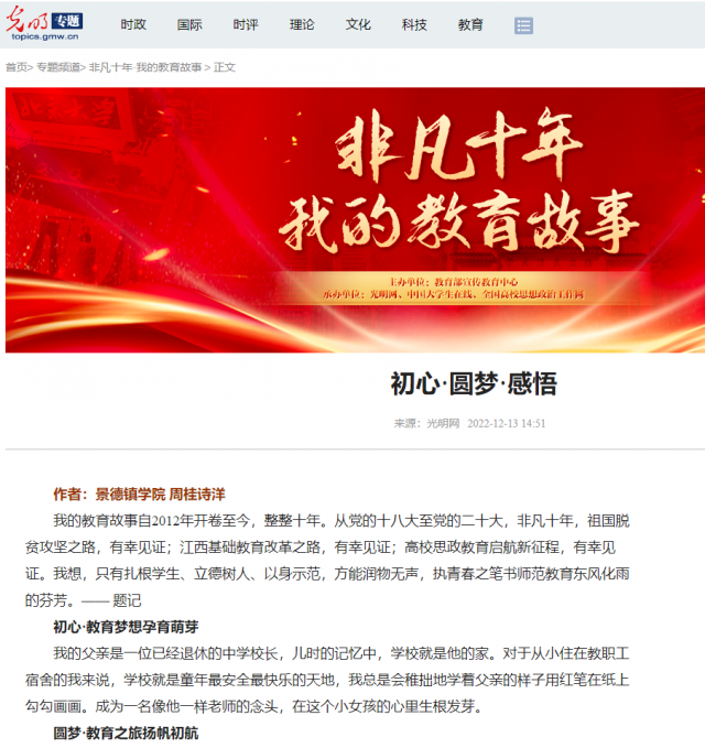 beat365官网教师故事《初心·圆梦·感悟》入选教育部“非凡十年·我的教育故事”宣传教育活动