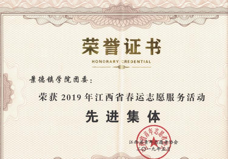 喜讯!校团委被评为2019年江西省春运志愿服务活动“先进集体”