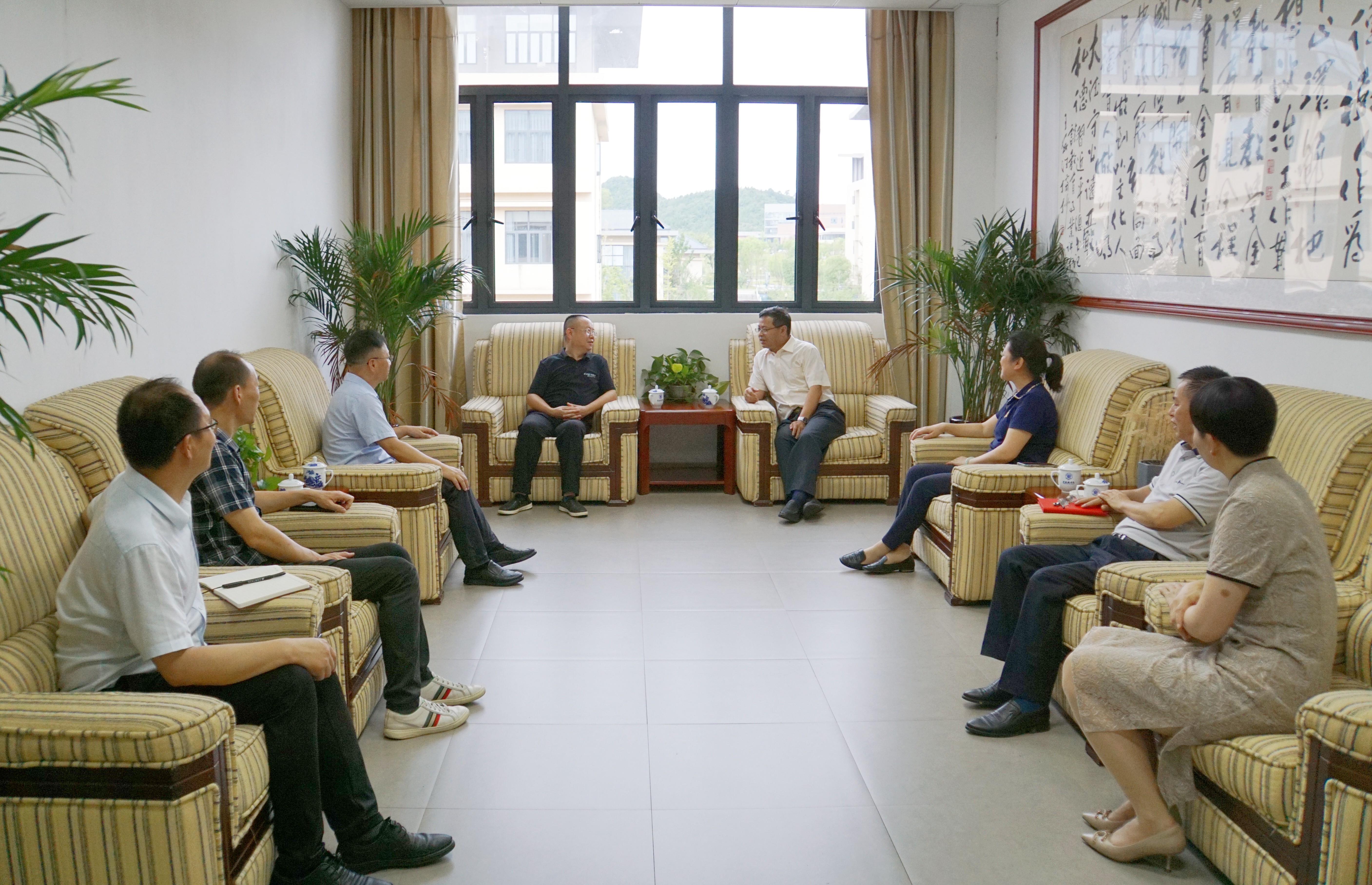 (本网讯:洪超、李婷婷)6月20日,浮梁县政协主席程文芳一行来beat365官网调研,校党委书记叶观荣,党委委员、统战部部长万文军在行政楼三楼接待室亲切接待。 beat365官网亲切接待浮梁县政协主席程文芳一行 李婷婷摄 会谈期间,程文芳表示,...
