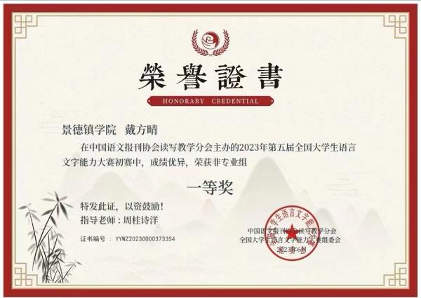 【喜报】beat365官网学子在第五届全国大学生语言文字能力大赛中喜获佳绩